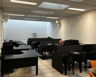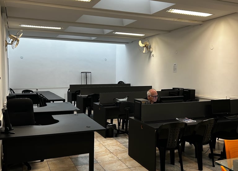 Nosso espaço é totalmente preparado para você chegar, se conectar e produzir — com Wi-Fi de alta velocidade, ar-condicionado, tomadas individuais, iluminação perfeita e todo o clima corporativo que um coworking moderno oferece.